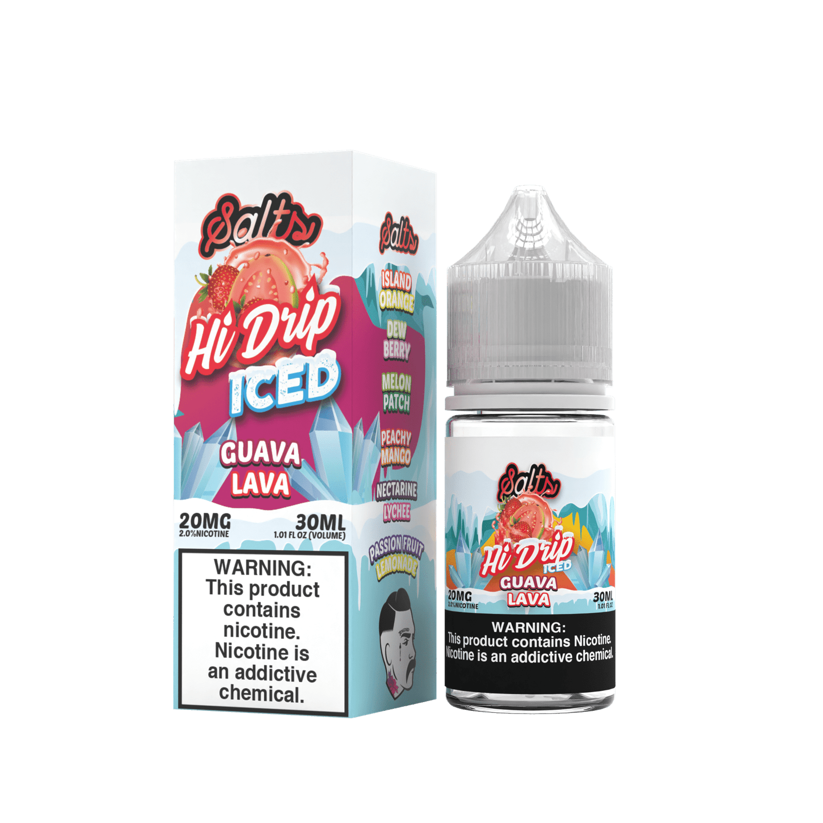 HI DRIP® Iced Guava Lava Salts erupts with bold guava and fruit punch flavor, balanced by an icy menthol finish for a tropical, cooling rush.