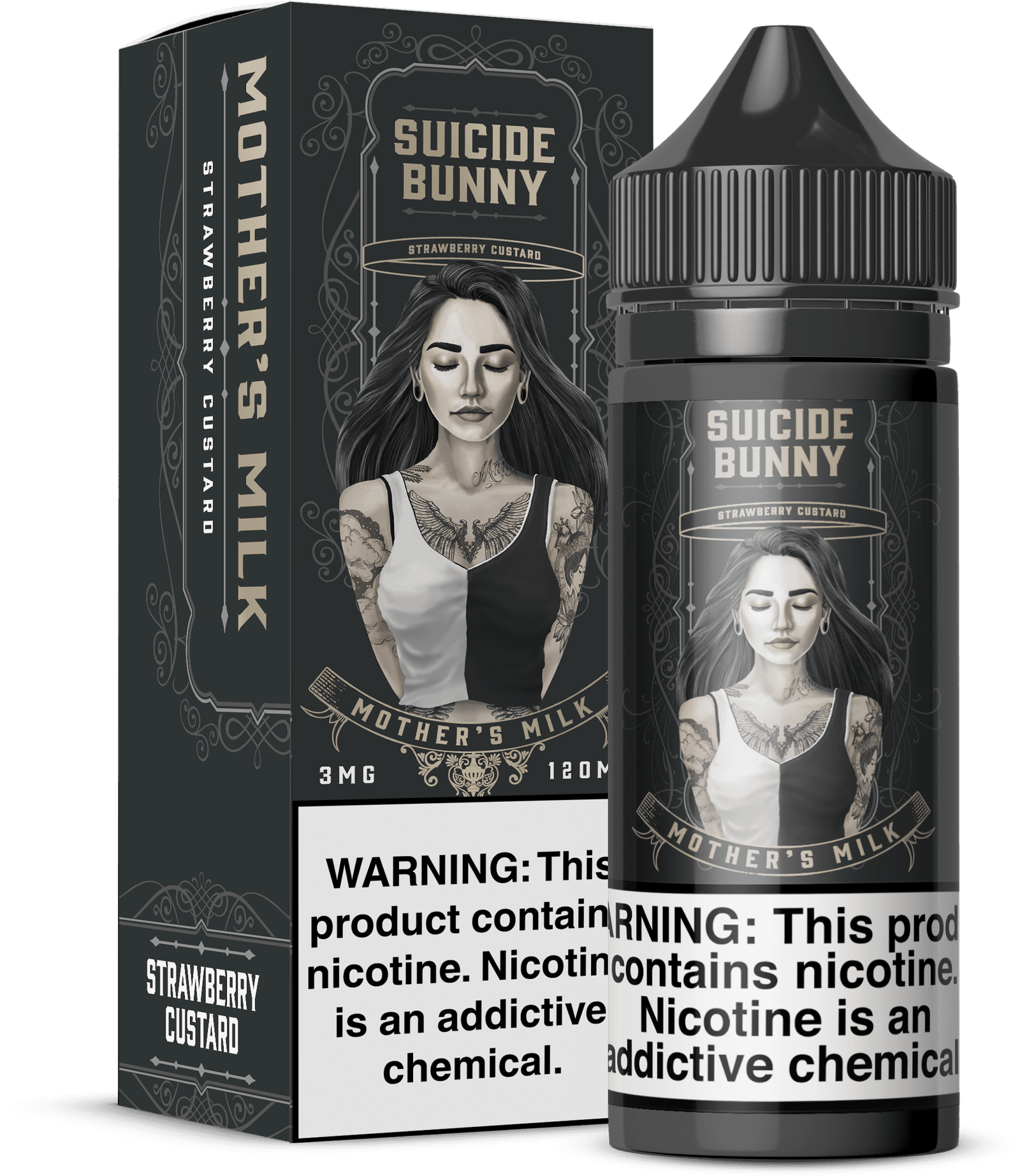 SUICIDE BUNNY® Mother’s Milk laces creamy custard with a whisper of sweet strawberry, crafting a soft yet seductive all-day indulgence.