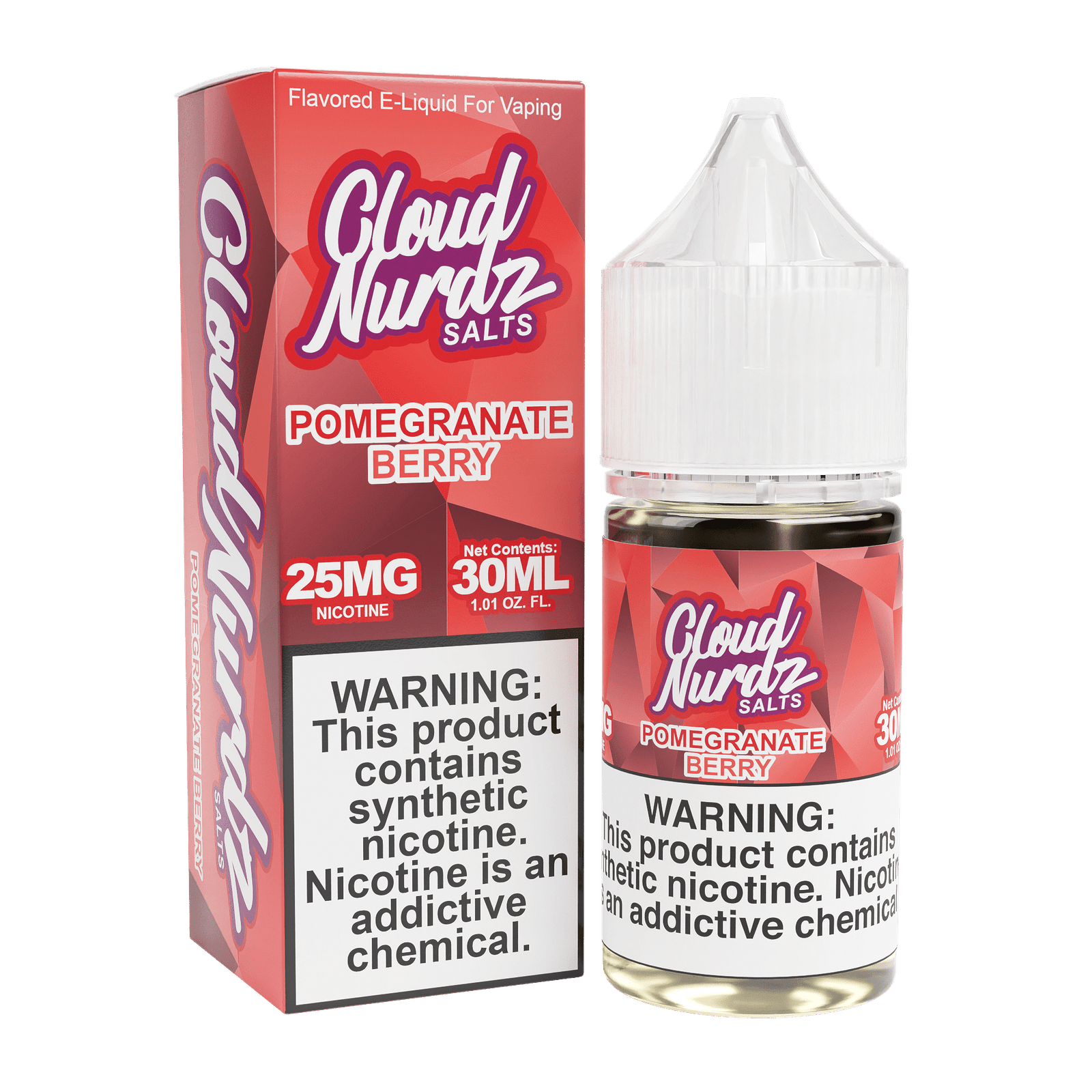 CLOUD NURDZ® Pomegranate Berry Salts delivers luscious fusion of sweet-tart pomegranates and juicy summer berries, creating a vibrant, well-rounded flavor bomb.