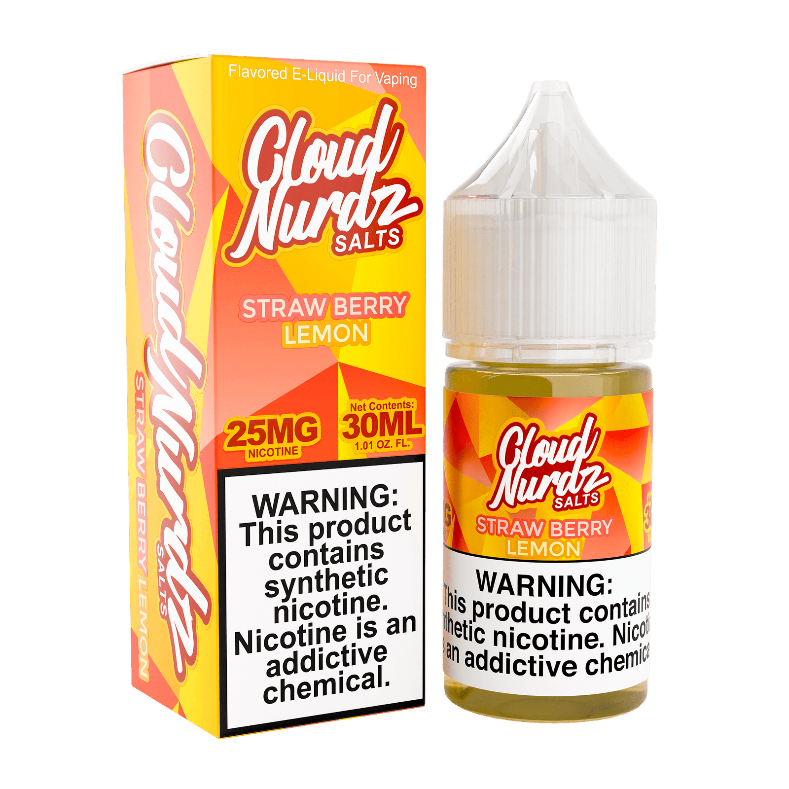 Cloud Nurdz® Strawberry Lemon Salts: A fresh juicy strawberry flavor and perfectly tart lemon are combined to candied perfection in order to make the ultimate flavor! The Strawberry Lemon Cloud Nurdz Salt uses a mouth-watering mix of fruity vape flavors. The combination of a sweet strawberry with a tart lemon vape flavor makes it an ideal all day vape.