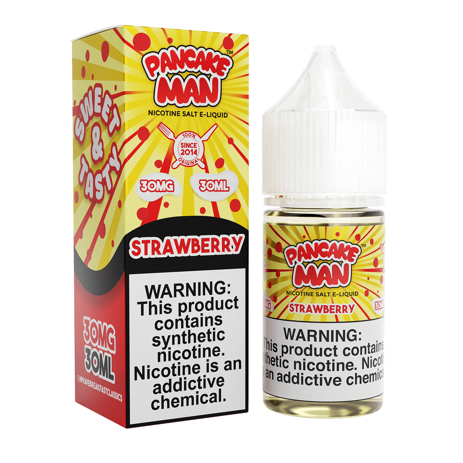 - 1 x Pancake Man® Strawberry Pancake Salt E-Juice | 30mL