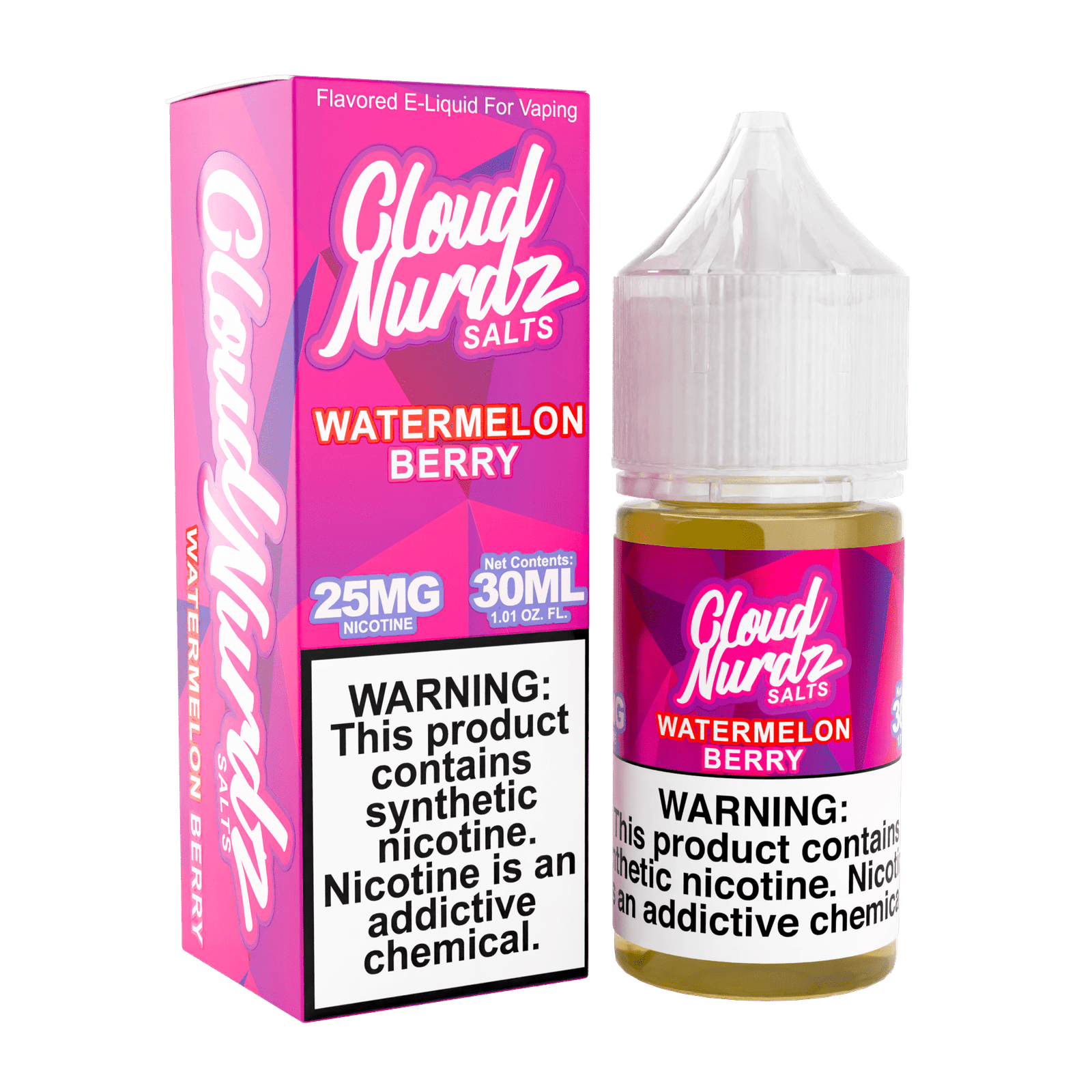 CLOUD NURDZ® Watermelon Berry Salts blends juicy, sweet watermelon with a masterful mix of delicious berries for an irresistible, mouthwatering taste.