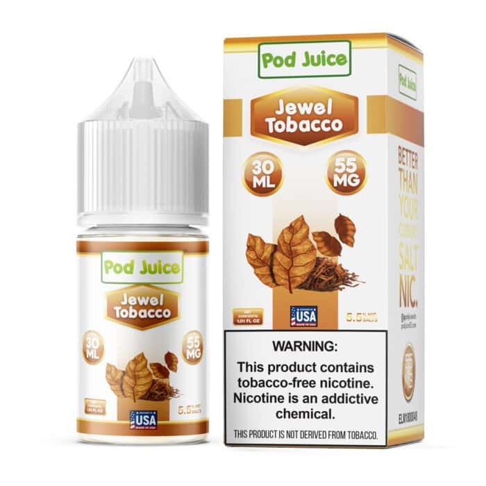 POD JUICE® Jewel Tobacco Salt offers a bold, full-bodied tobacco taste with a rich, refined smoothness.